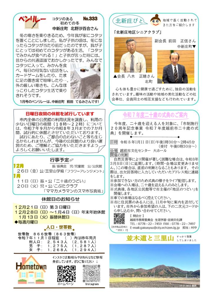 自治振興会だより / 2025年12月15日 2025年12月6日